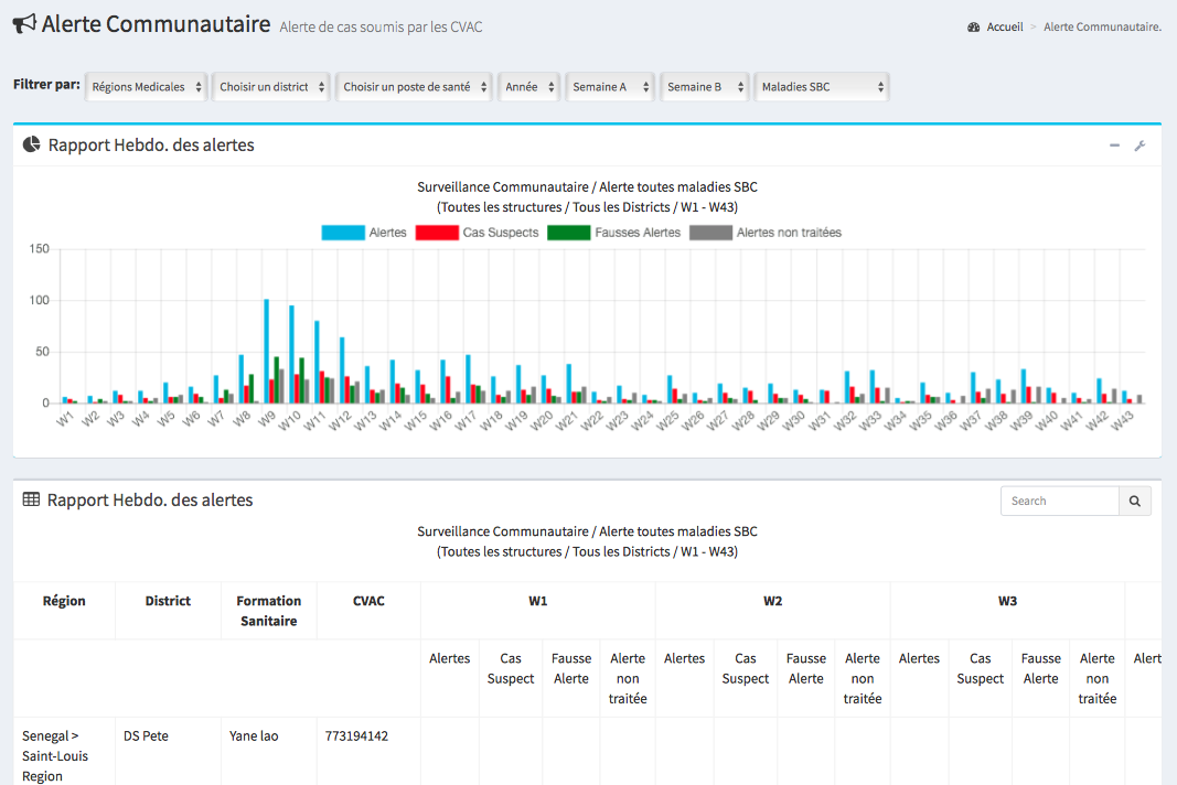 Ces graphiques montrent l'évolution des des rapports hebdo des alertes
