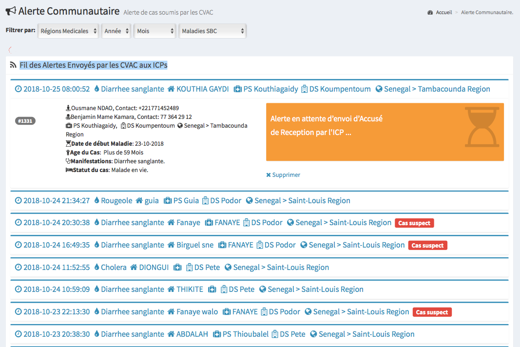 Puis cliquer sur Soumissions. Vous pouvez afficher les alertes en filtrant par année, par régions, par maladies ou par mois.