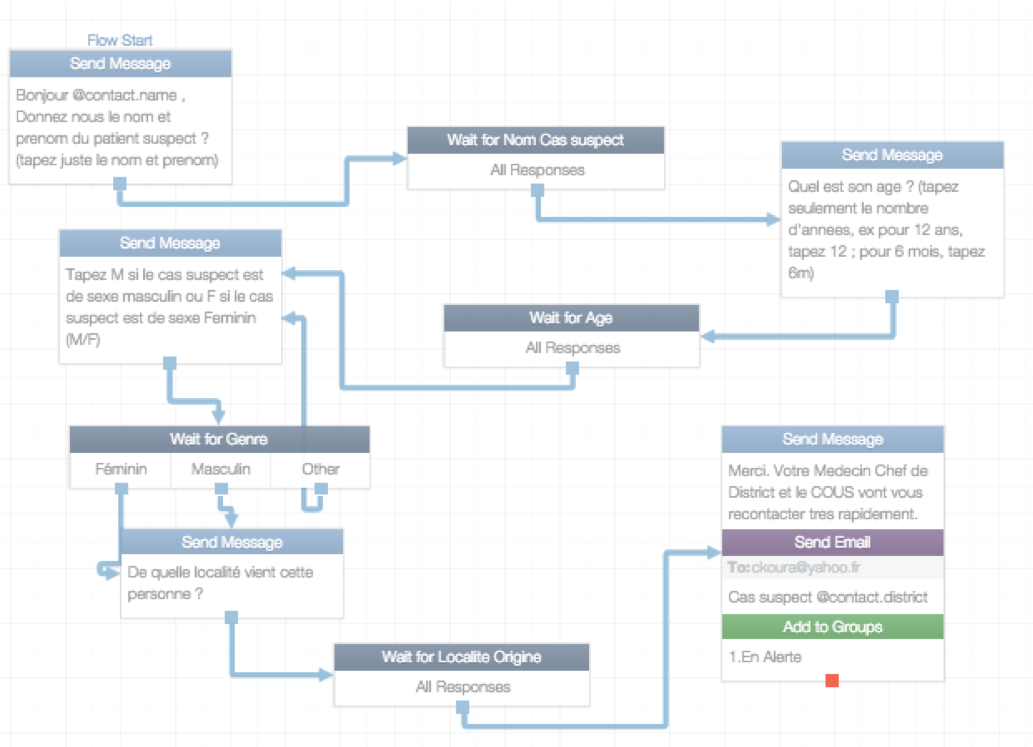 RapidPro est un système d’information en temps reel intuitif fonctionnant sur SMS ou Instant Messenger (Facebook, Twitter).